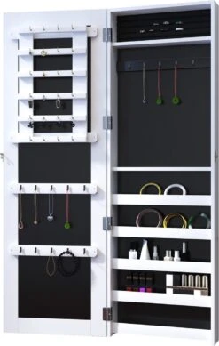 HOMCOM 2-in-1 Sieradenkast Wandspiegel Spiegelkast Sieraden Ladekast Spiegel 833-102WT