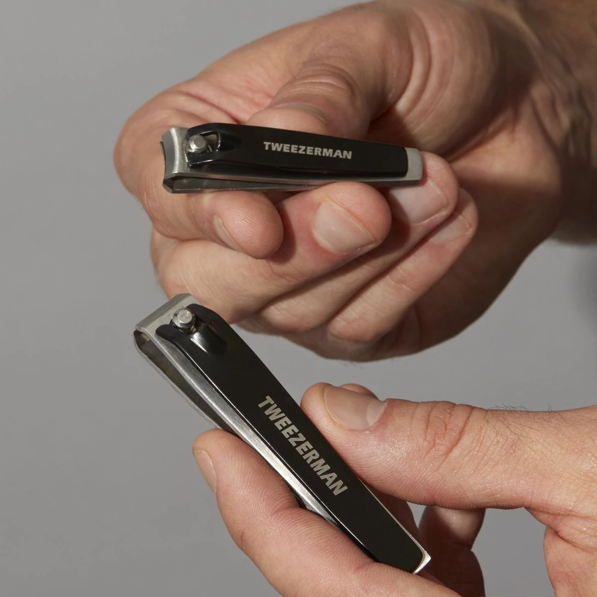 Zelfs de kleintjes van Tweezerman krijgen alle aandacht en worden zorgvuldig afgewerkt. Deze set van twee nagelknippers bestaat uit een normale en mini-formaat knipper. De scherpe RVS randen zorgen voor comfortabel en moeiteloos bijwerken van je nagels.